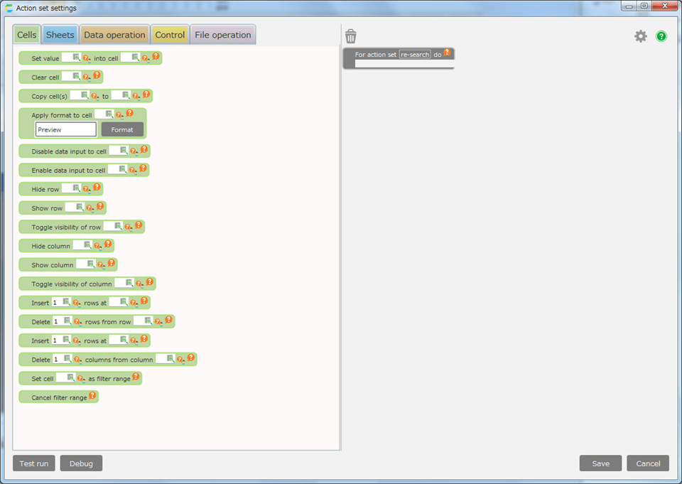 - Open the 'Action set settings' dialog.