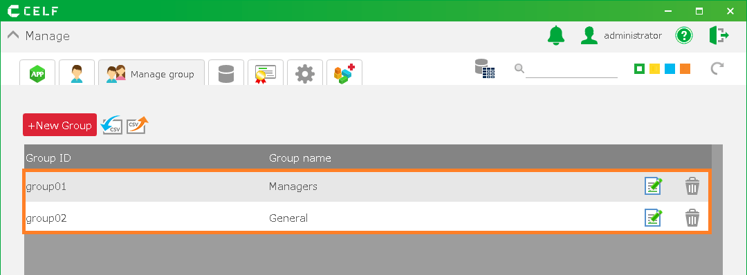 As an example, groups called "Managers"and "General" are created and the method how to publish the app to users in the "Managers" group will be explained.