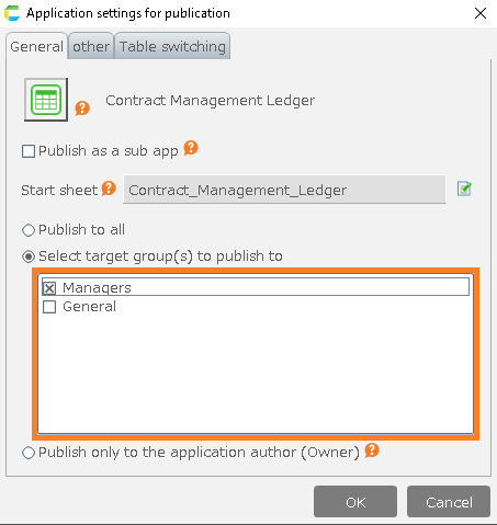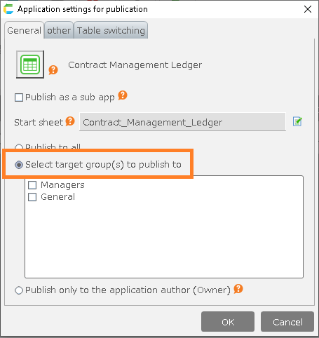 3.Open the General tab and click "Select target group(s) to publish to".