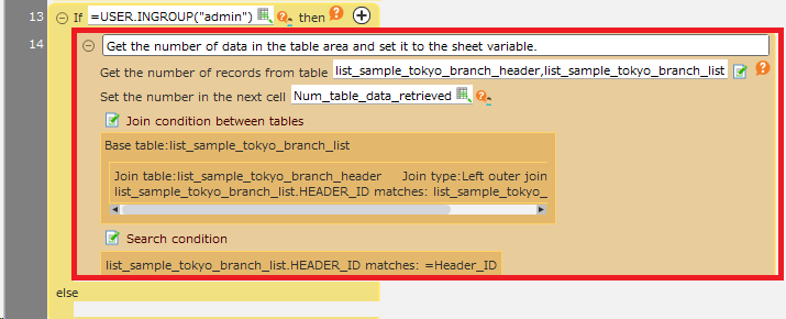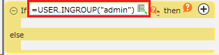- Enter "= USER.INGROUP("admin")" in the condition of the action placed in 2.