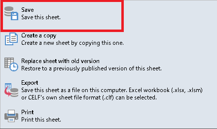 - Click the icon in the top left corner of the sheet and select "Save" to save the sheet.