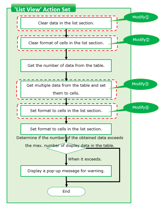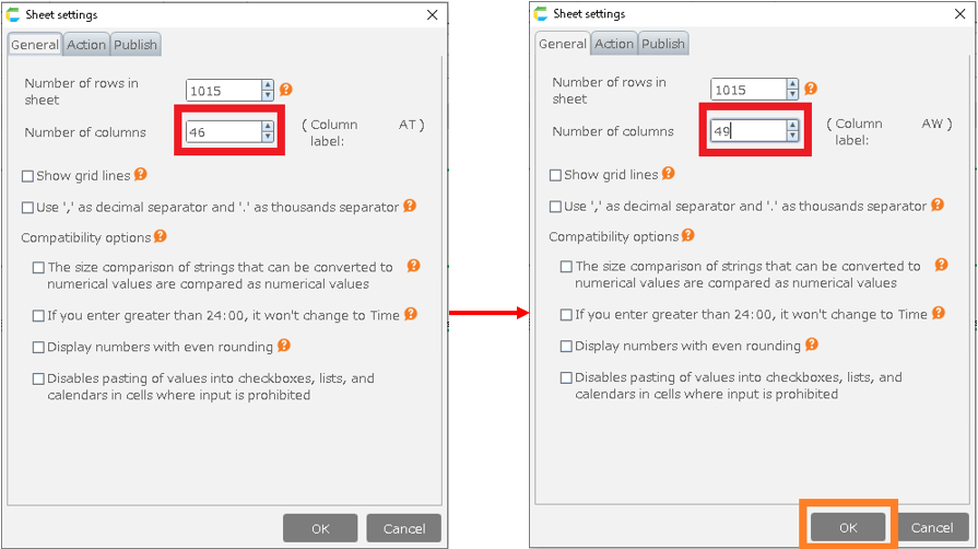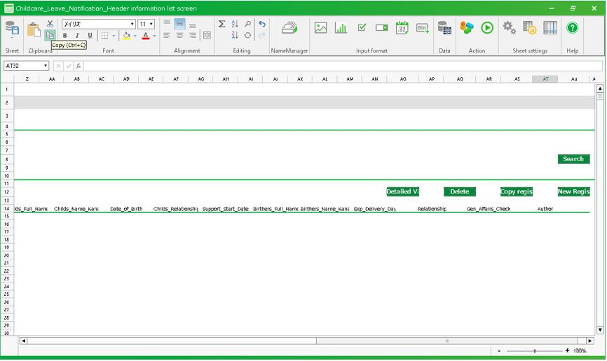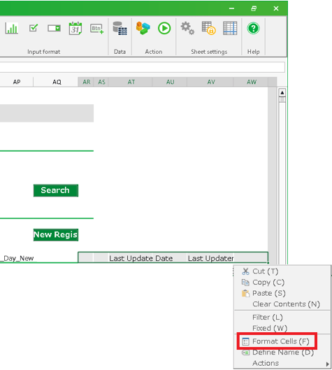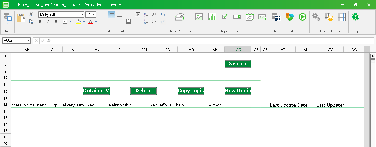 Here, the range up to the AQ column is changed to be up to the AV column.The column you added when you edited the screen is the AV column in this example.