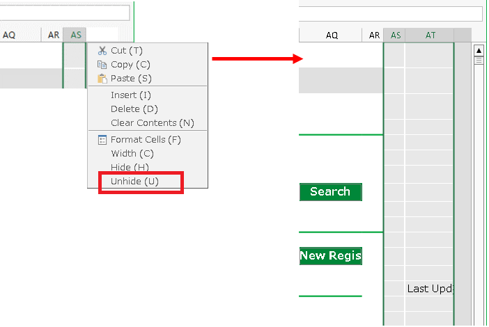 Display the hidden column on the right side of the screen. Place your mouse pointer over the rightmost column heading, hold down the left mouse button and move the pointer to the white column name and release the left mouse button.