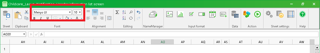 If you hover the mouse over the right side of the column heading, the cursor will change to "↔".If you hold down the left mouse button and move the mouse left or right, the width of the row will change.Change the font. Along with the other items, the font should be "MeiRyo" and the size should be 10pt.