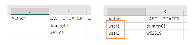 - Open the exported csv file, enter the user name that created the data in the Author column and save it.