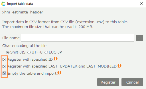 For more information on the import table data, see "Import Table Data (CSV)".