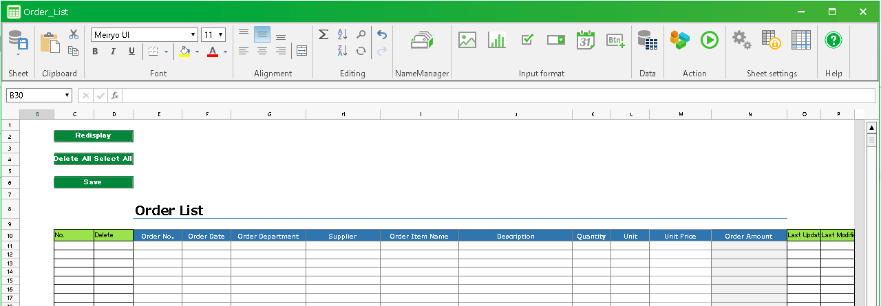 - Double-click the Order List sheet (main sheet).