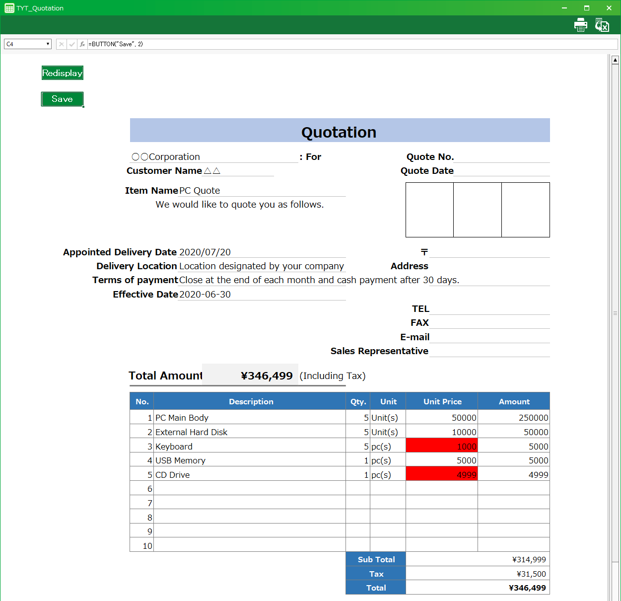 - Double-click the quotation sheet (main sheet).
