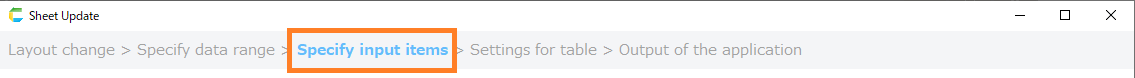 - Once the setup screen opens, proceed to the 'Specify Input Items' screen.