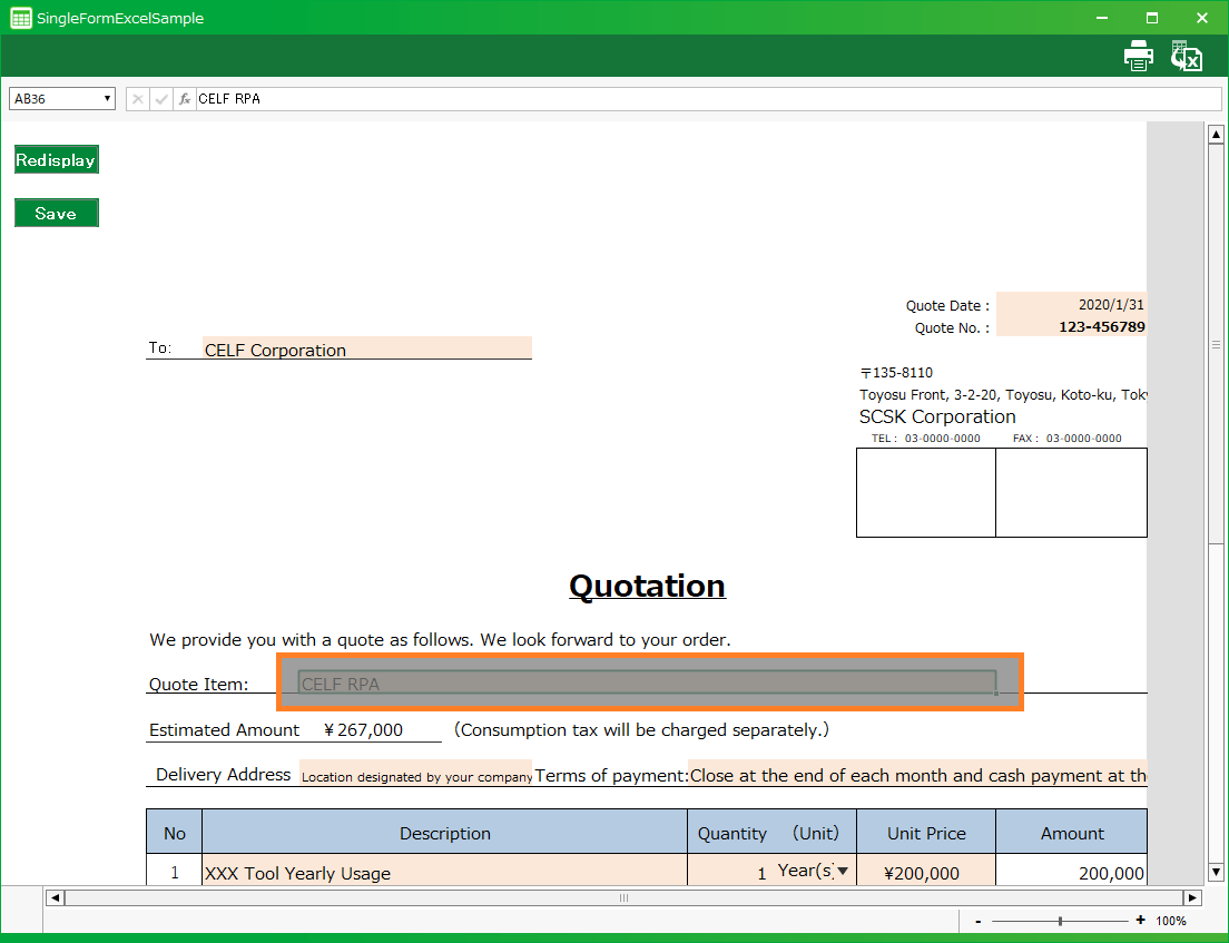 This section explains how to modify a single form app created with the "Create Appn from Excel" function.