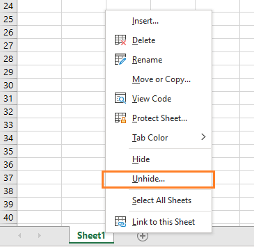 Hidden sheets can be displayed by right-clicking on the sheet name and selecting "Unhide" from the menu that appears.