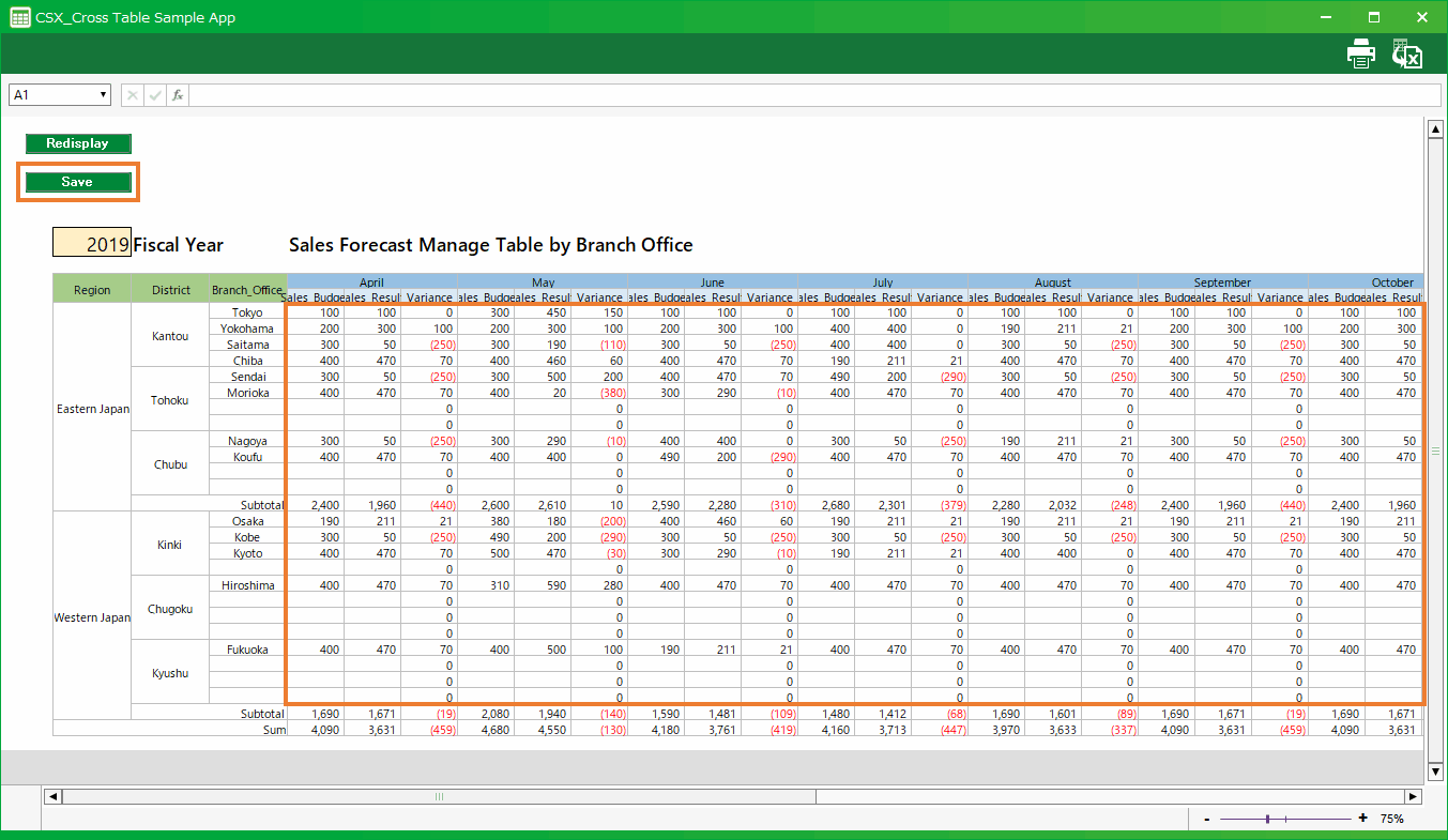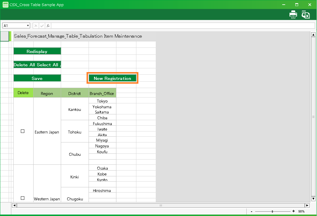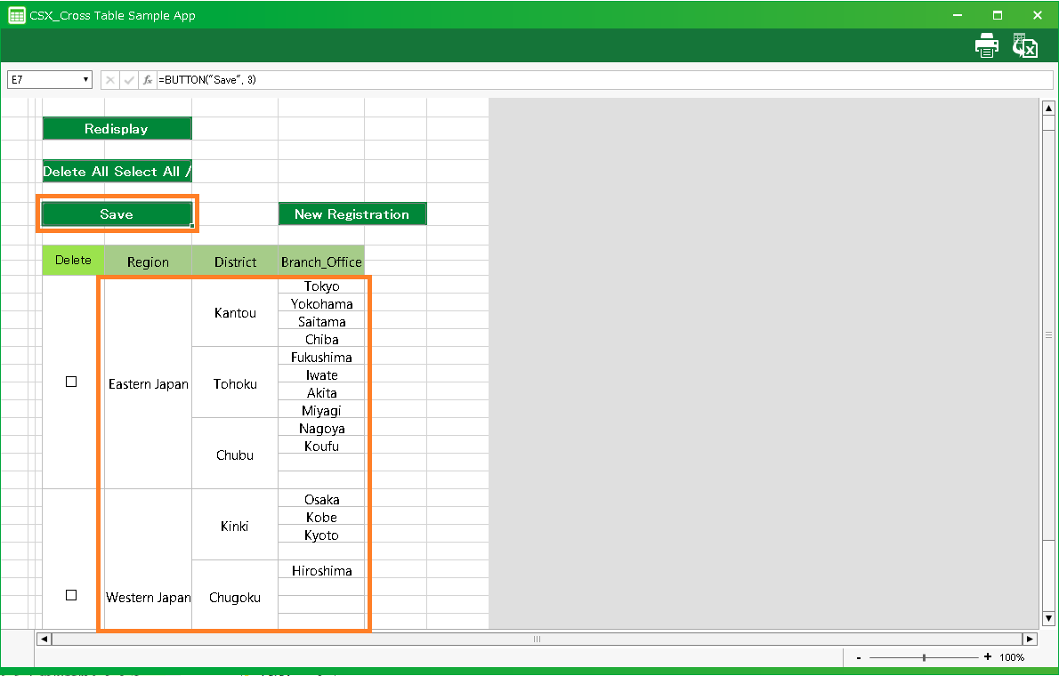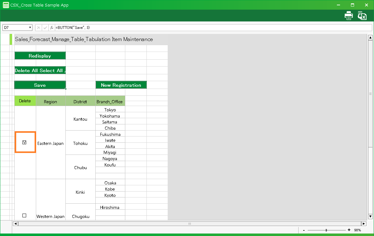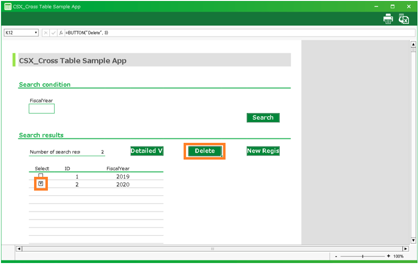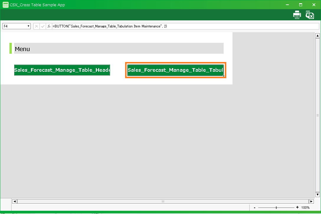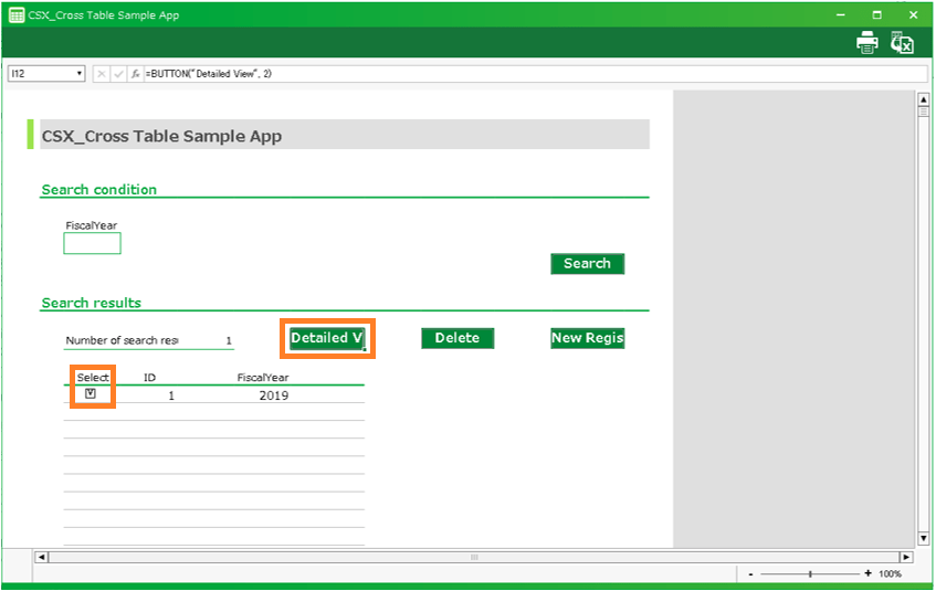 In this section, we’ll explain how to use the cross table application automatically created by "Create app from Excel file" function.