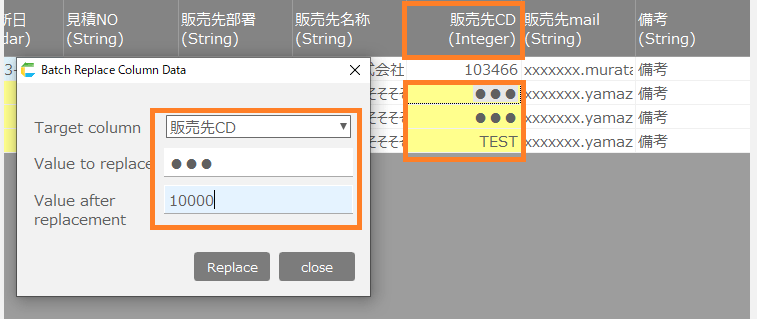 4) Batch Replace Column Data … This button is used to batch replace column data.
