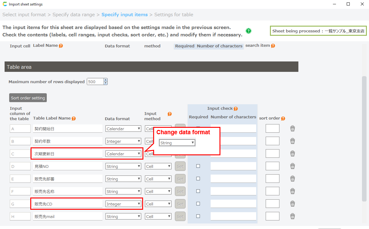 - How to change the data type of a target item to 'string' on the input item specification screen