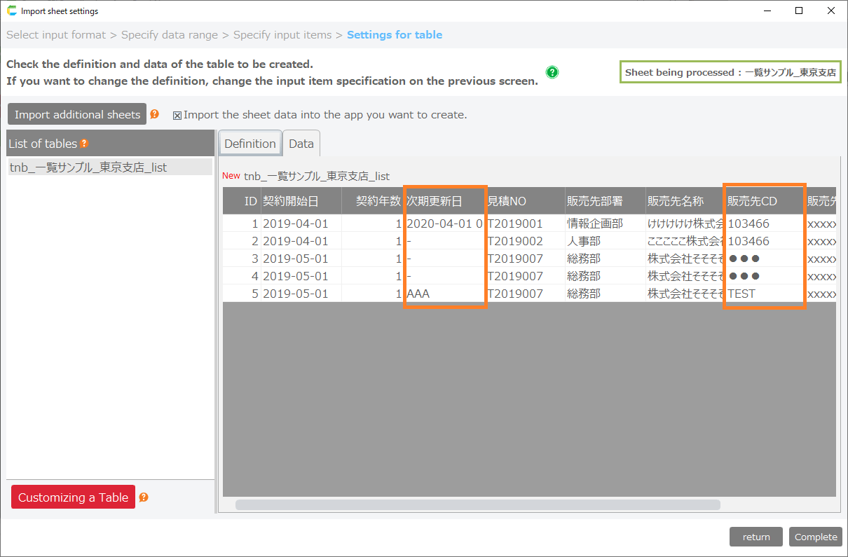 If data that cannot be imported is not modified, it will be replaced with blanks and imported into the table.
