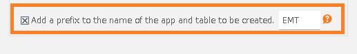 The app name and table name can be prefixed with a common string of up to 5 charactersIf you don’t want to add strings, uncheck the box.![]()