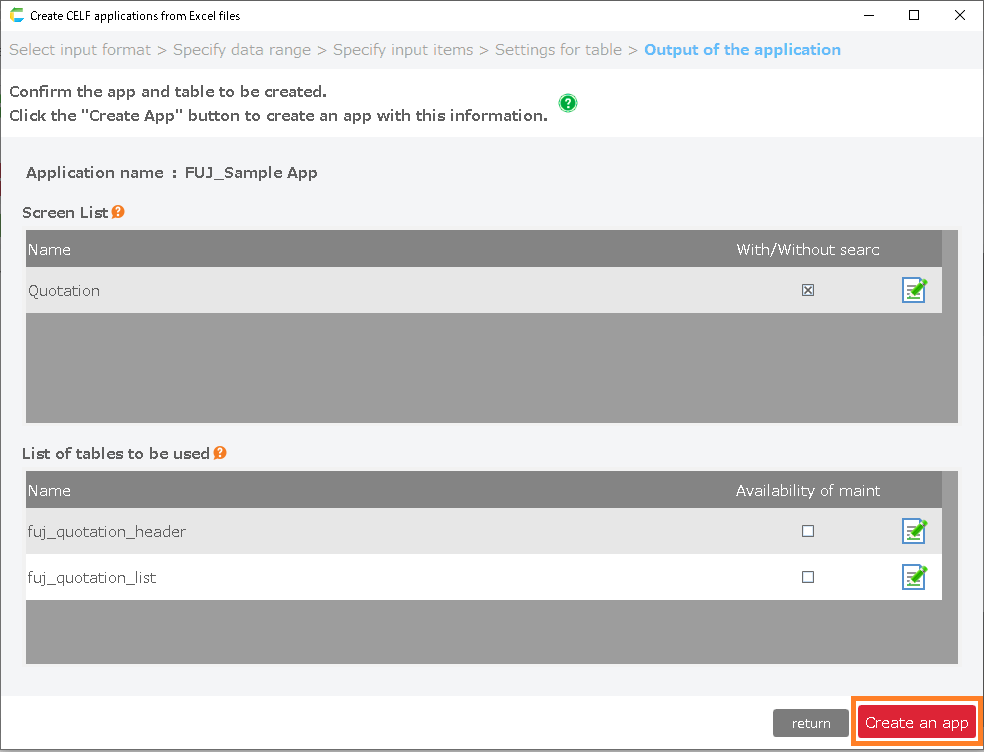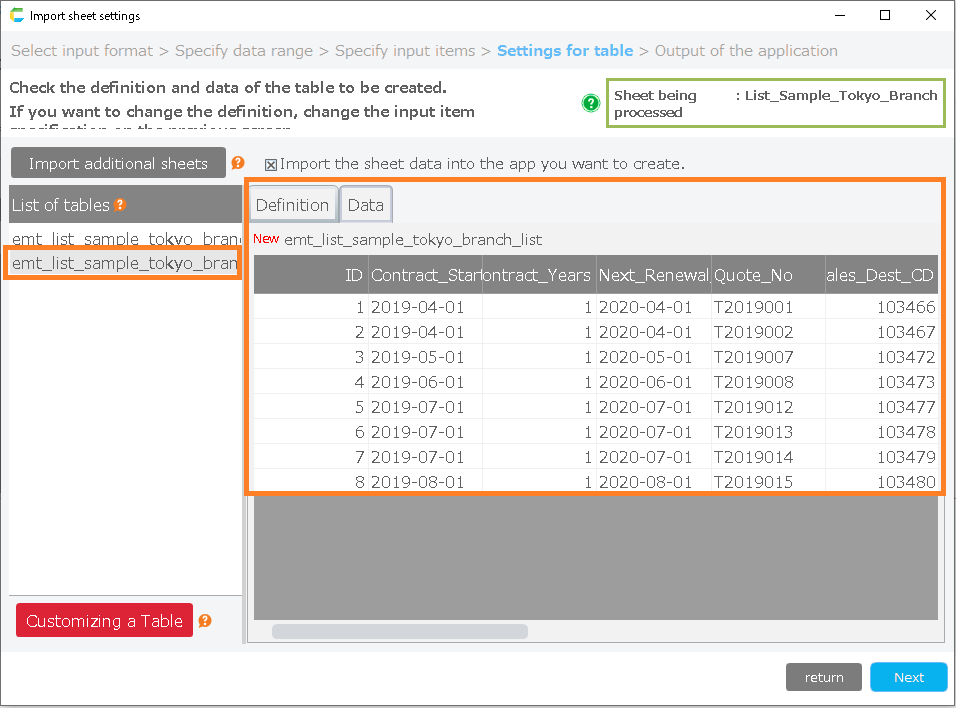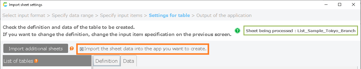 If you check the "Import the sheet data into the app you want to create" checkbox, the app will be created with the imported sheet data registered.If the check box is unchecked, only the table will be created and the application will be created .![]()