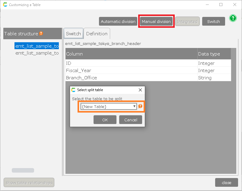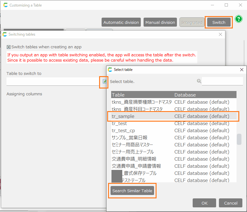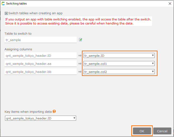 Set which item in the destination table to switch to for each item. If you do not set all items, you will not be able to switch to them.When the settings are complete, click "OK" to complete the table switching.![]()