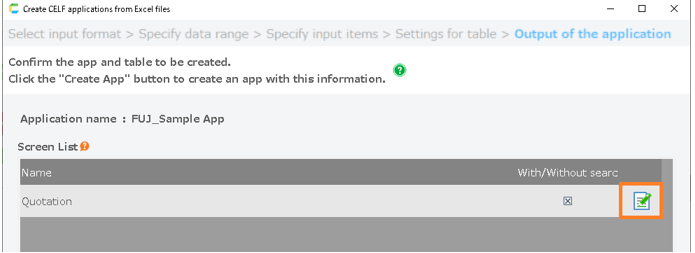 This section describes the detailed operations of the "Create app from Excel file" function for each screen.