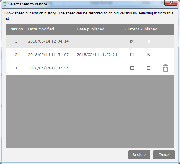 CELF manages the version of the sheet at the time it is published, allowing the sheet to be edited without affecting the running app. In addition, by republishing a published app that contains the edited sheet, the upgraded app can be used.
