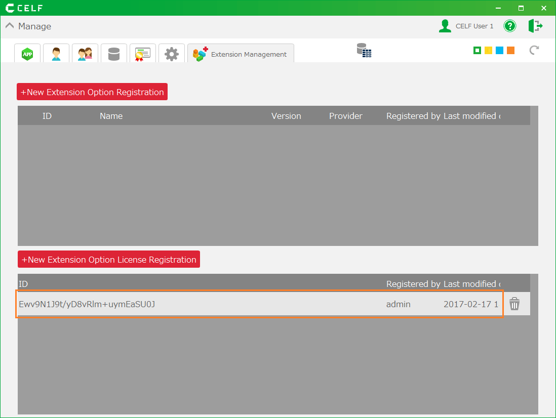 - Click '+New Extension Option License Registration' button, and then select .scurl file for license registration.
