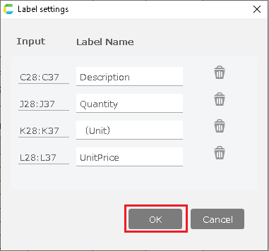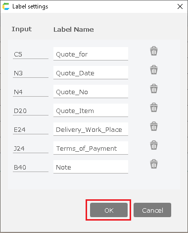 - When the 'Label Settings' dialog box opens, click the 'OK' button.