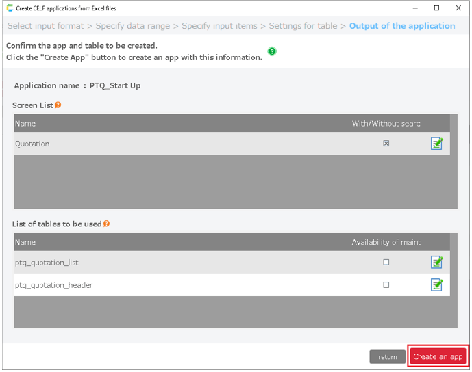 For more information on the screen, please click Description of operations by screen (list / single sheet).Click How to use automatically created applications for how to use the created app.