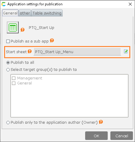 - The app you create can be used by setting the 'Menu' sheet as the start sheet in the public settings.