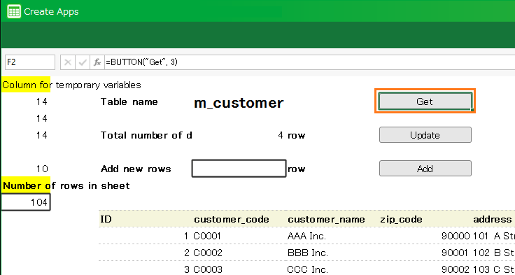 - Click 'Get' button in master management sheet.