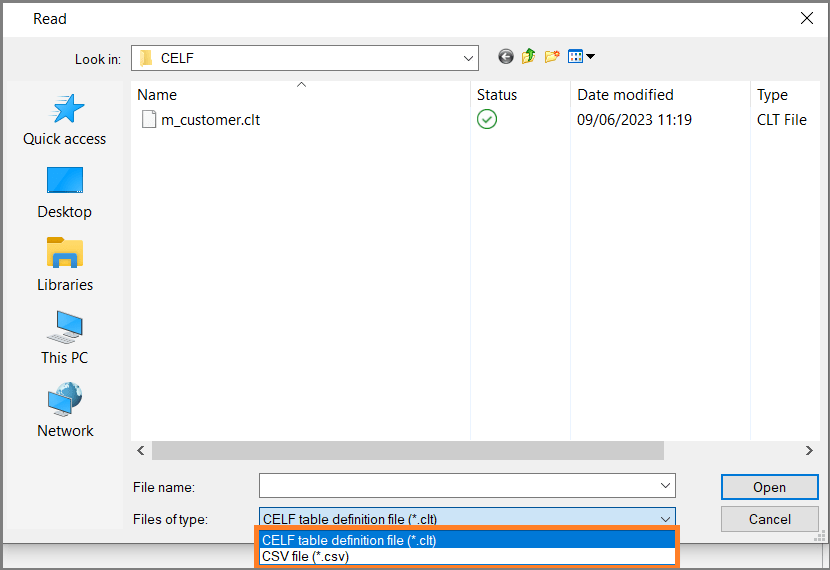 'CELF table definition file (.clt)' is created by exporting the table definition.