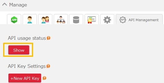 - Click the 'Display' button for "API Usage Status" to open the "API Usage Status" view.