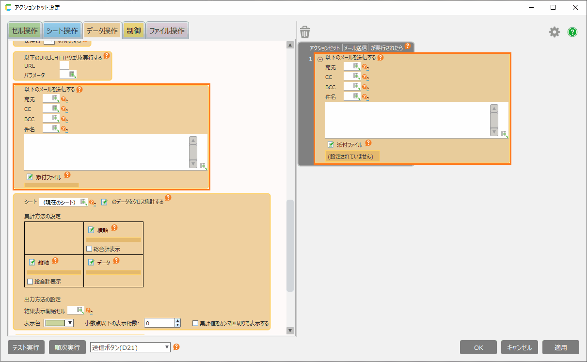 - 1度の処理(1つのアクションセット)で送信できるメールは 最大1通