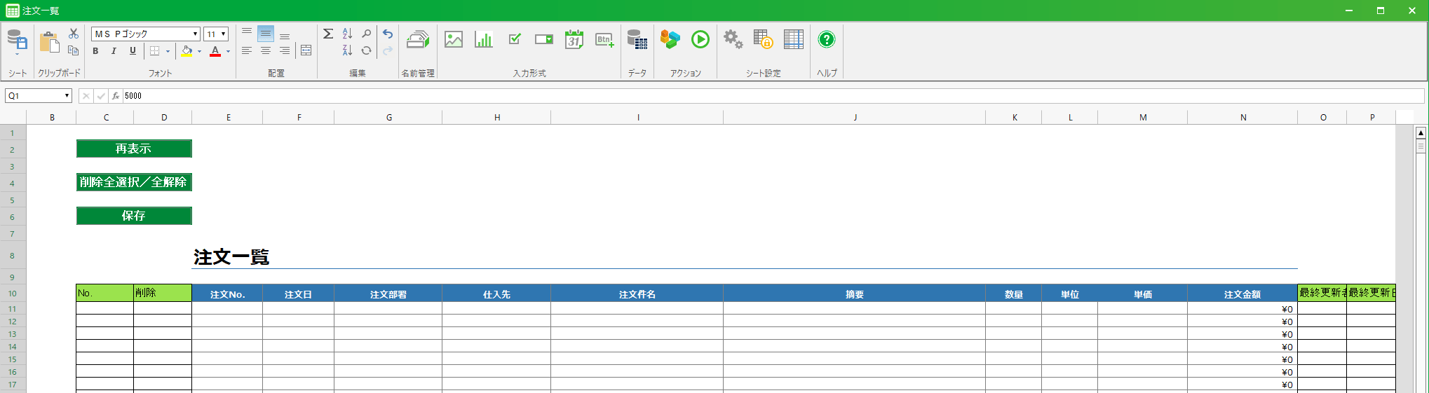 - 注文一覧シート(メインシート)をダブルクリックします。