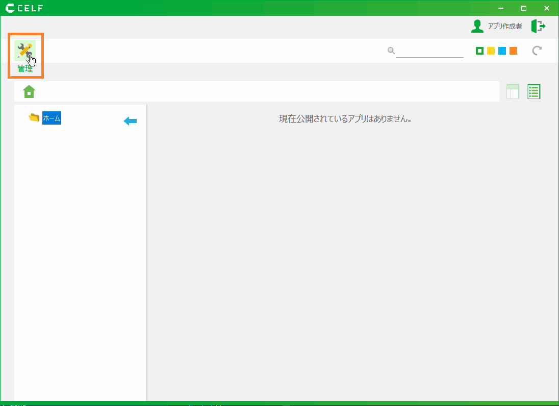 - CELF に ログイン し、「管理ボタン」をクリックして管理画面を開きます。