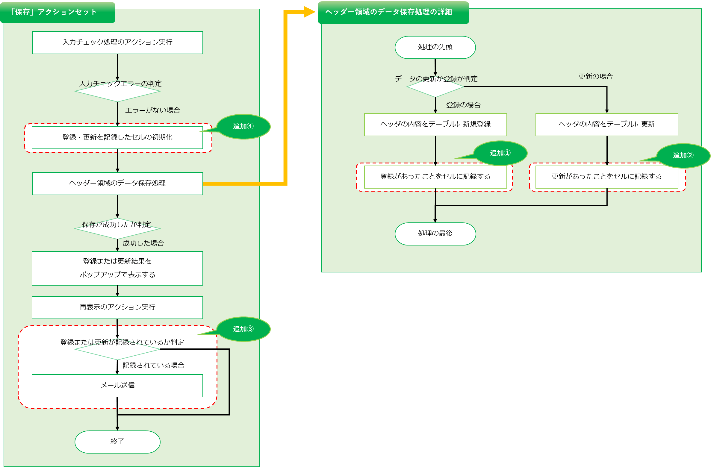 「ヘッダの内容をテーブルに新規登録し、ヘッダIDを採番する。」とコメントされているアクションを探してください。