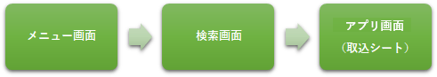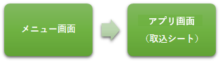 シート名 シートタイプ 役割 [アプリ名]_メニュー 画面レイアウト メニュー画面用シートです。この画面を起点に各画面へ移動します。 [取込シート名]_ヘッダー情報一覧画面 画面レイアウト データの検索画面です。メイン画面に遷移する前にデータの選択を行います。 [取込シート名] 画面レイアウト メイン画面用シート(取込シート)です。データの登録、更新を行います。 [参照シート名] 部品/画面レイアウト 取込シートから参照されるシートです。このシートでデータベースのデータ取得を行います。 [参照シート名]_ヘッダー情報一覧画面 画面レイアウト データの検索画面です。参照シートに遷移する前にデータの選択を行います。 [参照シート名]_制御用(登録)_[取込シート名] 部品 取込シートを参照するシートです。このシートで取込シートの入力セルを参照し、参照した値でデータベースのテーブルを更新・登録します。 [参照シート名]_制御用(データ) 部品 参照シートの更新前データを保持するためのシートです。データの保存を実行した際、データ更新有無の比較に使用します。 [参照シート名]_制御用(リスト) 部品 参照シートのリストボックスの値を保持するためのシートです。 ちなみに