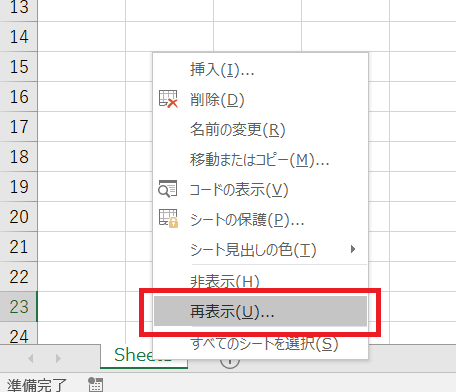 - 非表示シートがないかを確認する。