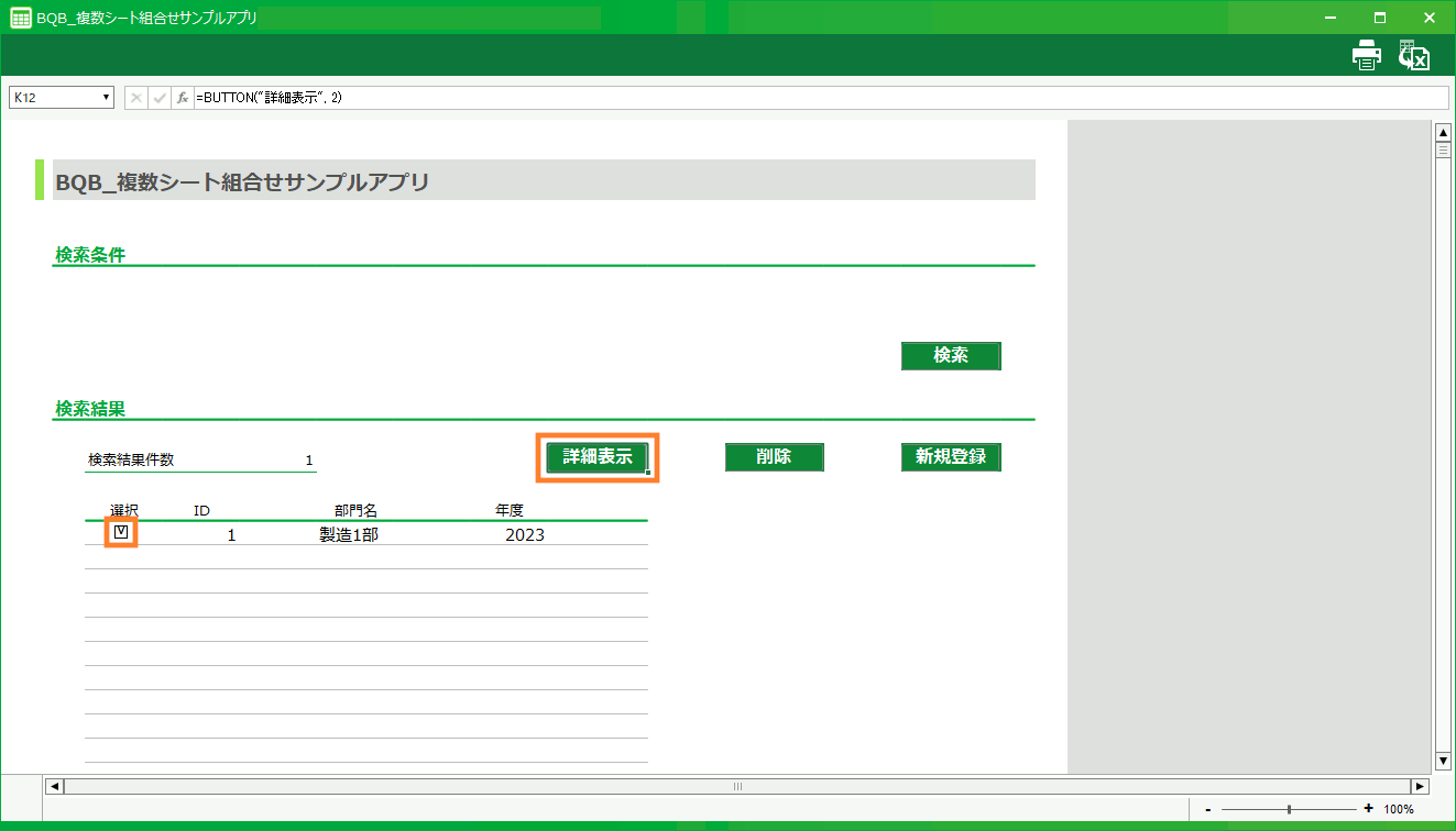 ここでは「Excelファイルからアプリ作成」で自動作成した複数シート組合せアプリの使い方について説明します。