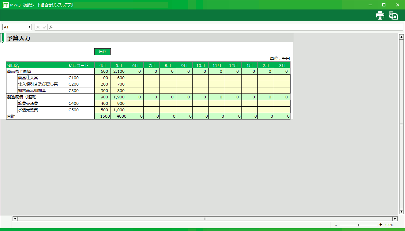 データ用シート画面の構成は一覧表アプリと同じです。使い方については、一覧表アプリの使い方 を参照してください。