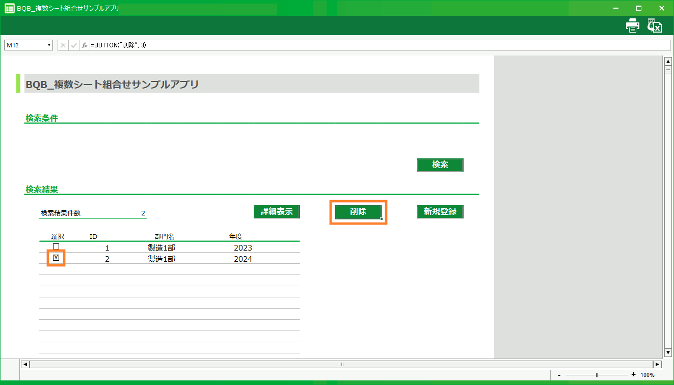 - 「削除」ボタンをクリックします。一覧が更新され、削除後のデータが表示されます。