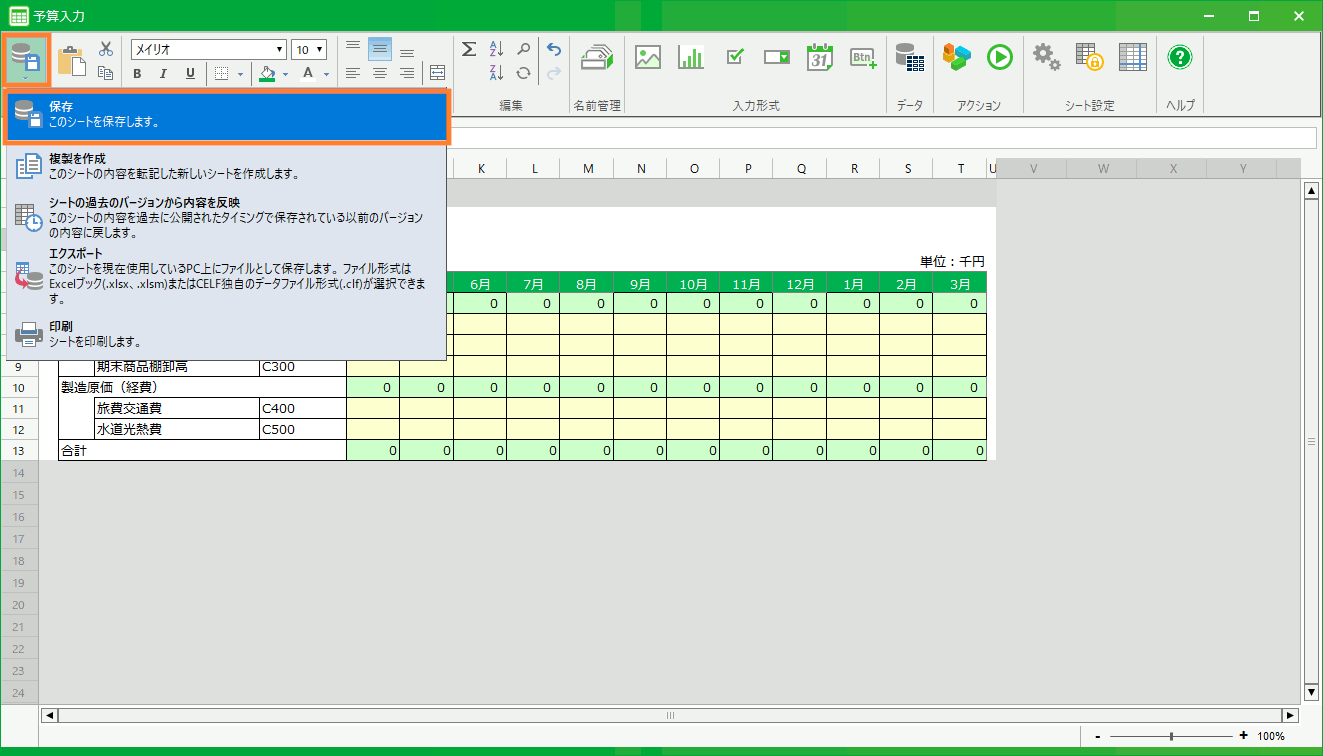 - 「シート」のアイコンをクリックします。「保存」をクリックします。