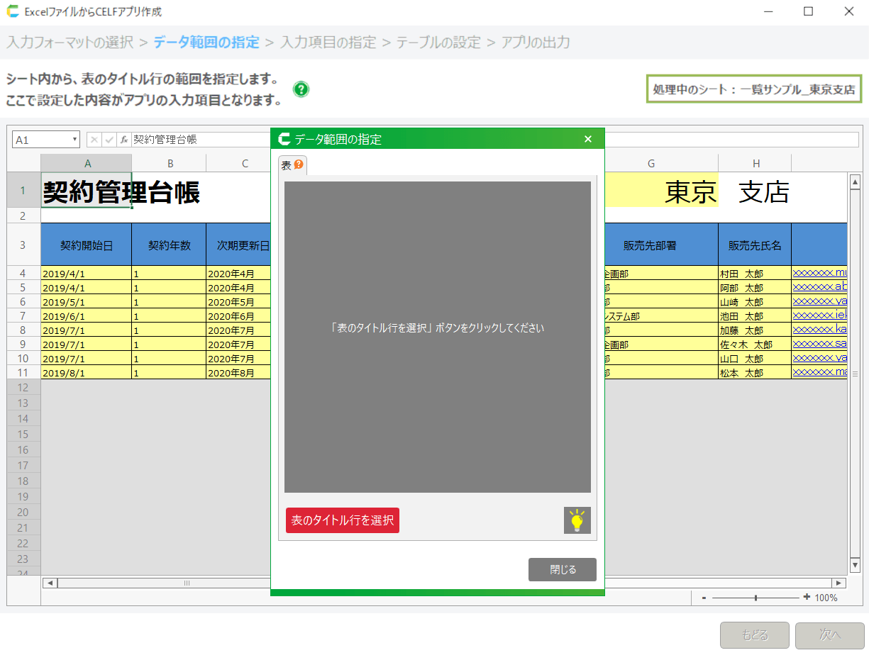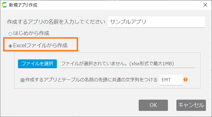 サンプルを使って試してみたい場合は Excelからアプリを作成する機能のチュートリアル を参照してください。