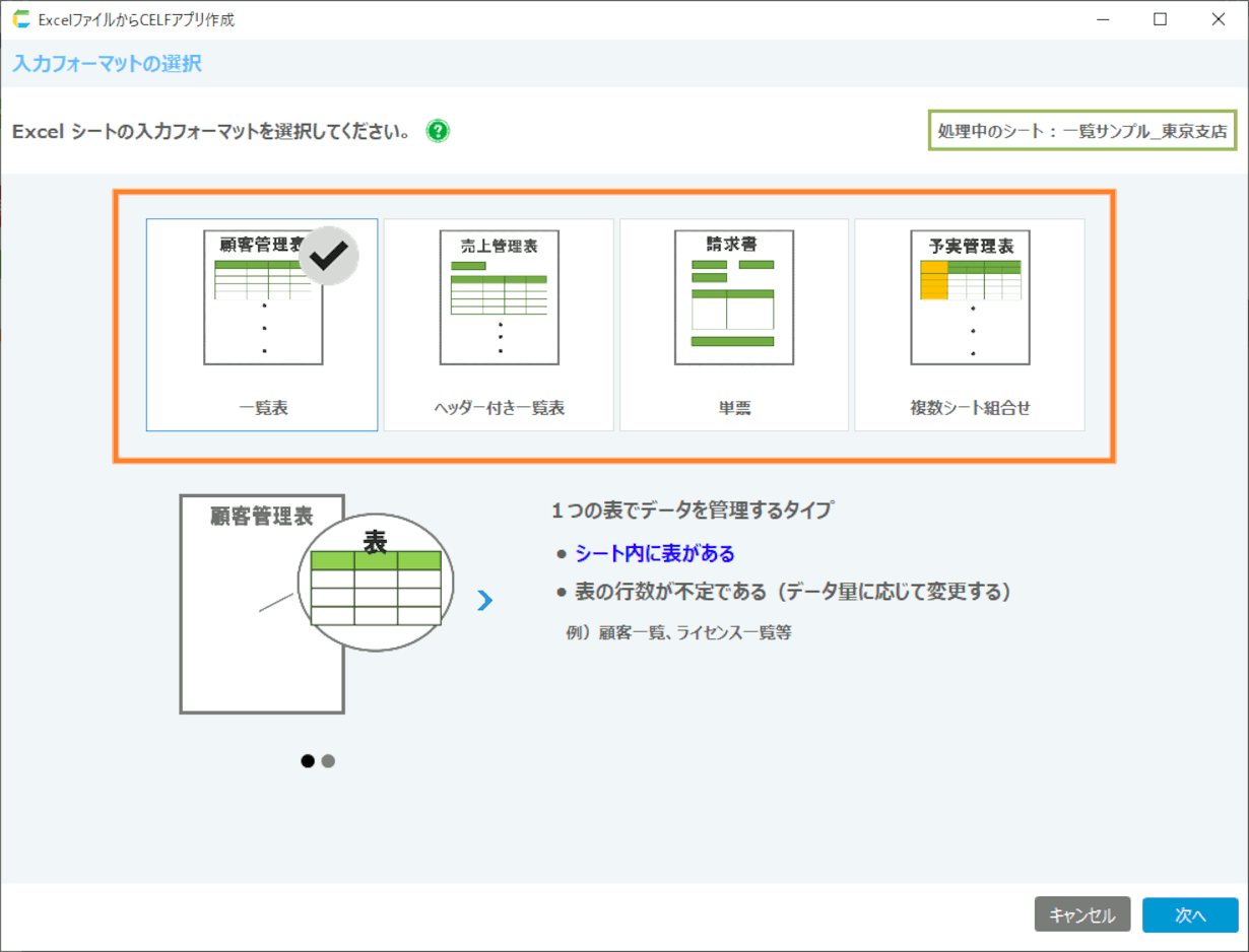 この画面では、シートの入力フォーマットを選択します。ここで選択したタイプごとに、アプリの使い方や画面構成が変わります。![]()