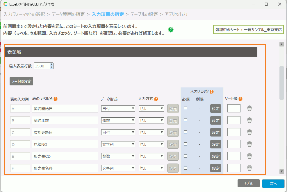 ここでは「Excelファイルからアプリ作成」機能の、画面ごとの細かい操作を説明します。