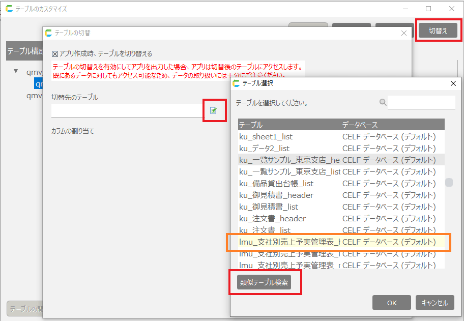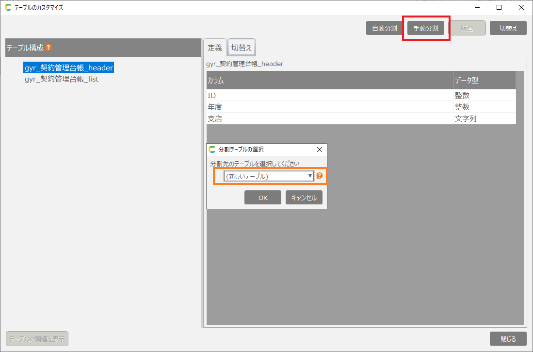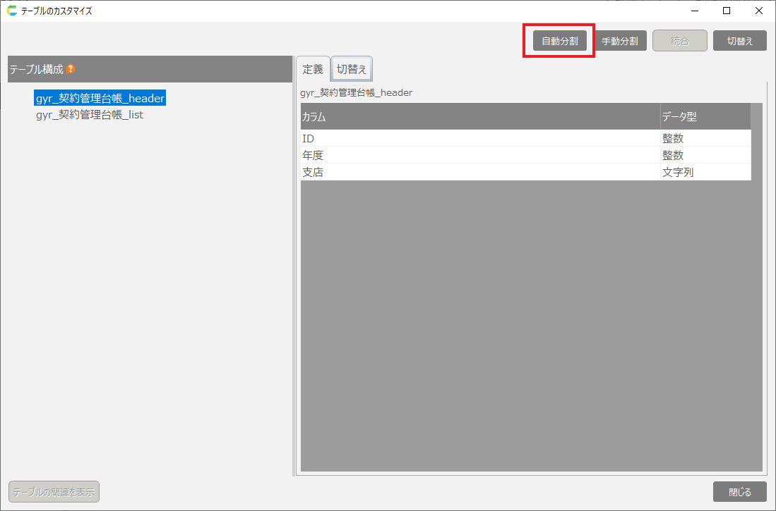 - [テーブル定義のカスタマイズ]