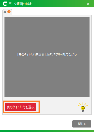 - データ範囲の指定ダイアログの「表のタイトル行を選択」をクリックします。