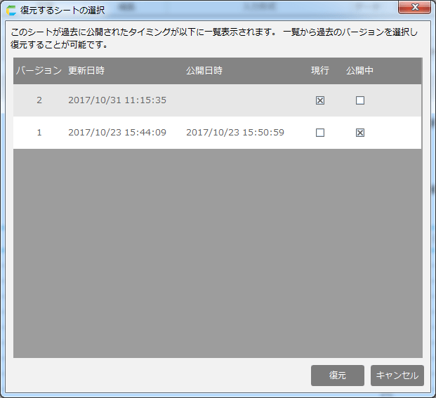 CELF では公開したタイミングでシートのバージョン管理をしており、実行中のアプリに影響を与えることなくシートの編集をすることができます。