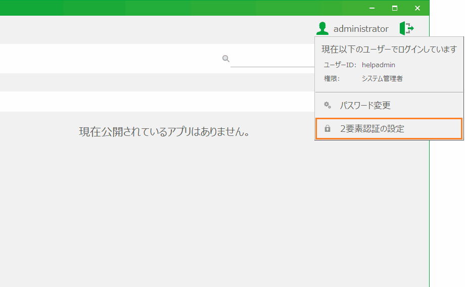 2要素認証利用設定については 2要素認証を設定する を参照してください。