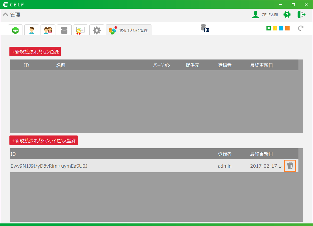 - 拡張オプションライセンスを更新するためにはシステム管理者の権限が必要です。