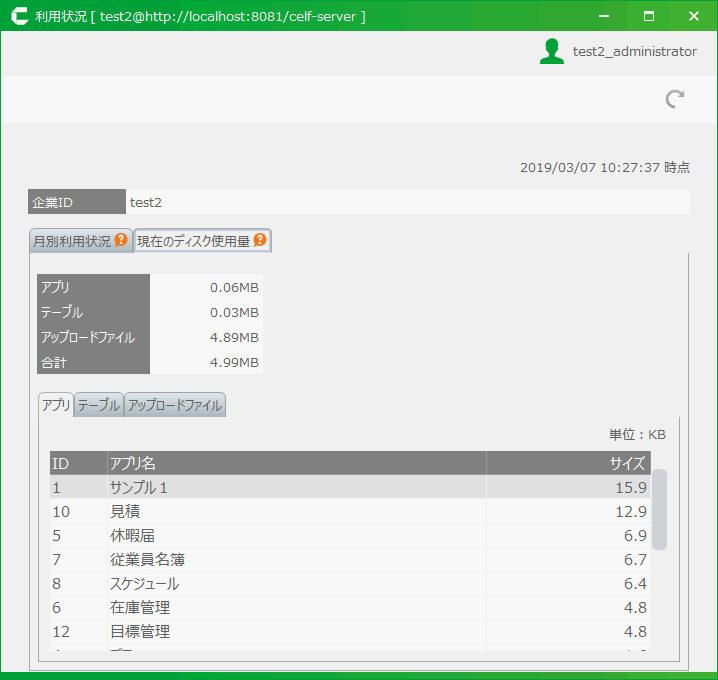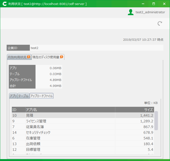アップロードファイルのディスク使用量を確認する¶